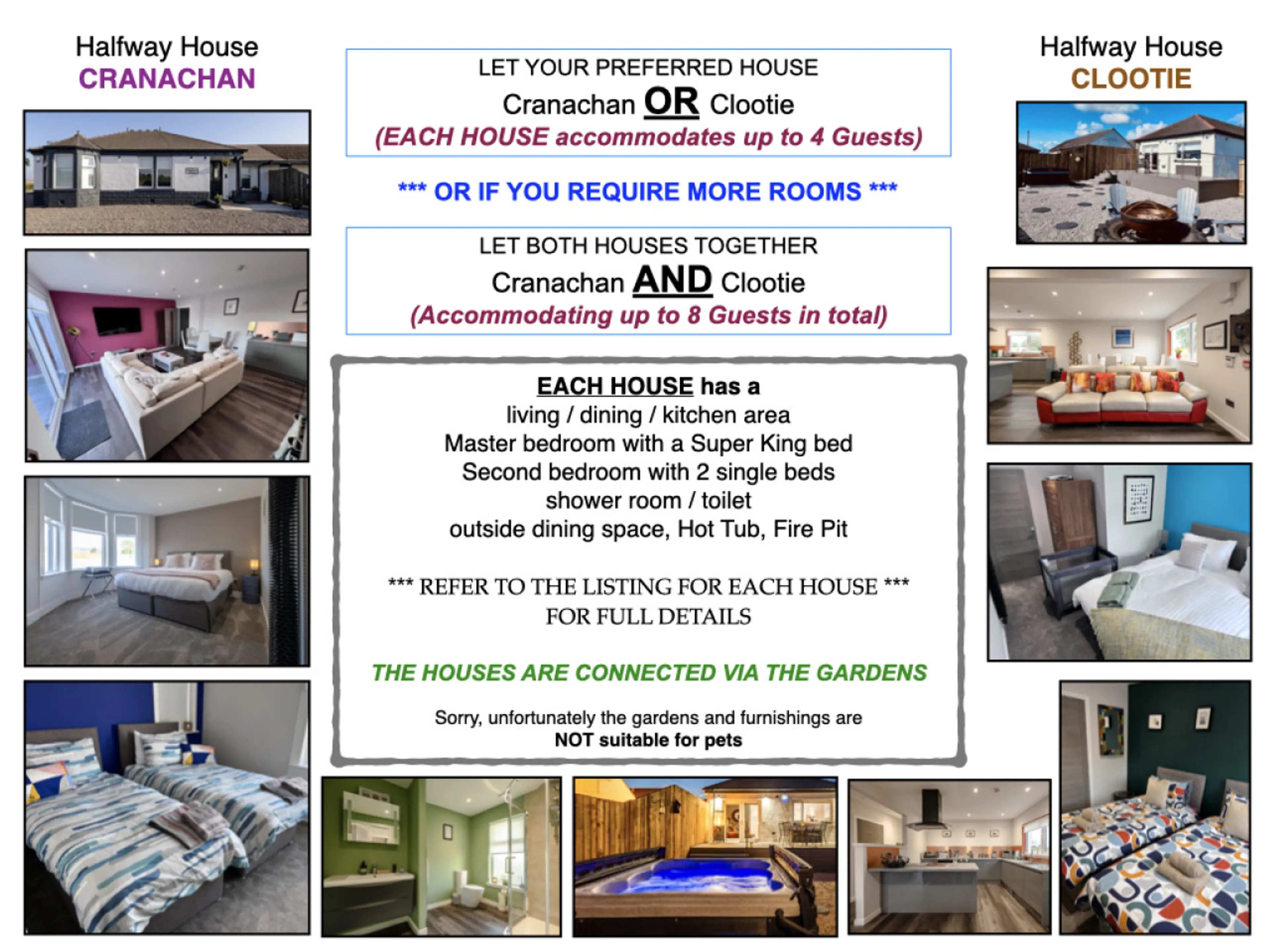 This Listing is 2 x 2 bed properties, next door to each other, connected via the gardens, forming a 4 bed, 2 bathroom, 2 kitchen & 2 hot tub property! Clootie & Cranachan can be booked separately via our other listings - please get in touch if you can't see them. Let Cranachan & Clootie together fo...